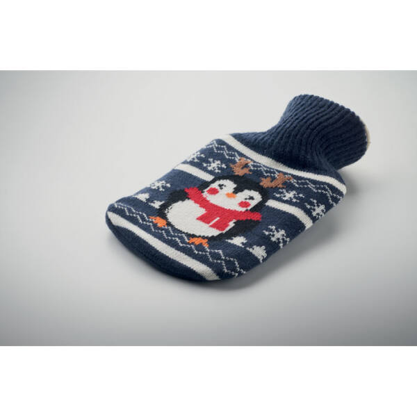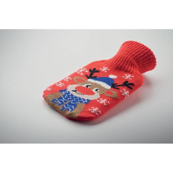 Esta bolsa de agua caliente con jersey de motivos navideños está elaborado en caucho. Tiene una capacidad de 250 ml. Se utiliza para dar calor, normalmente en la cama. También, es perfecta para aplicar calor en alguna parte específica del cuerpo.