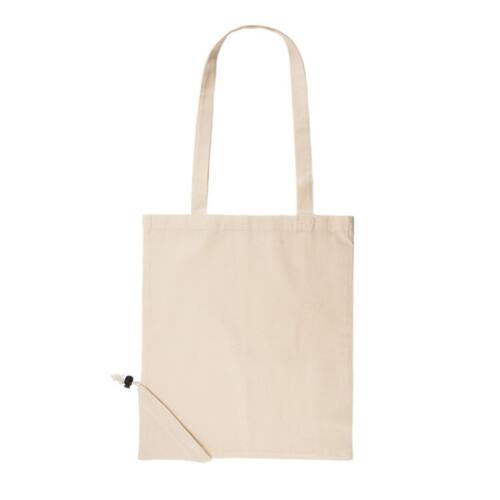 Bolsa de la compra plegable en algodón de 105 g/m². Es fácil de guardar al quedar plegada y es ideal para transportar todo aquello que necesites y además de cómoda de llevar gracias a sus asas largas. Cuenta con dos asas largas de 35 cm de longitud. Es fácil plegarlo de manera ajustable con su cordón.