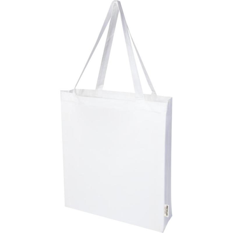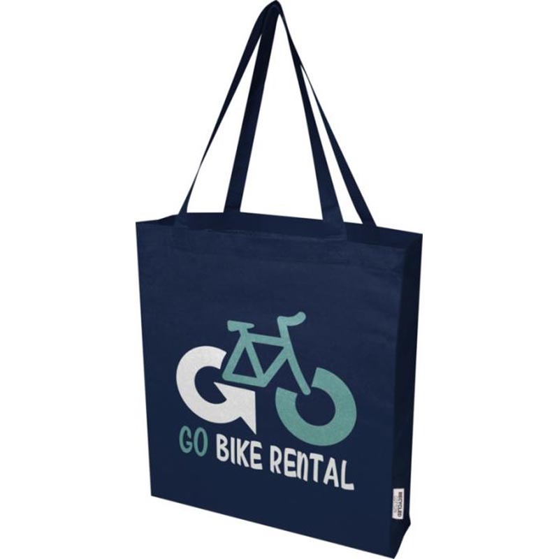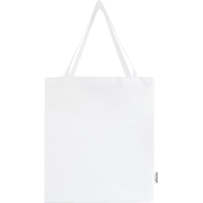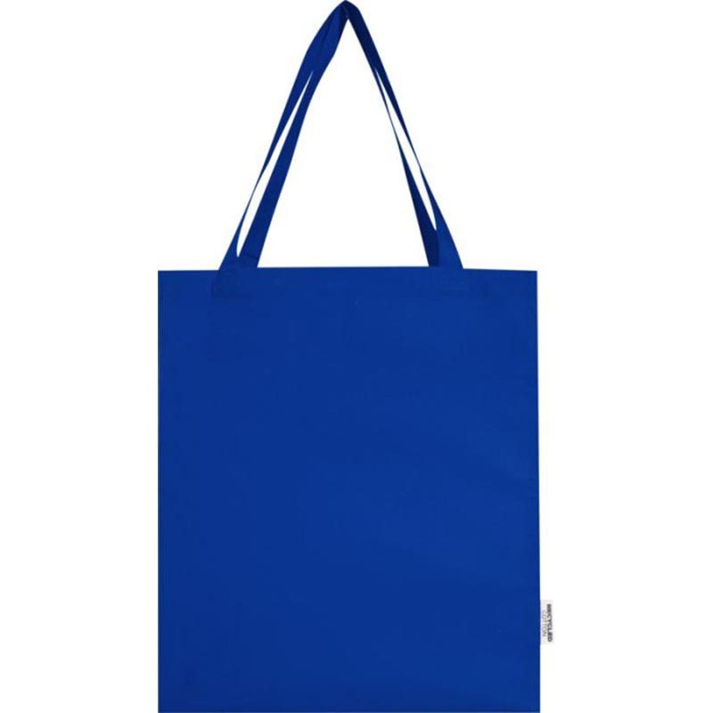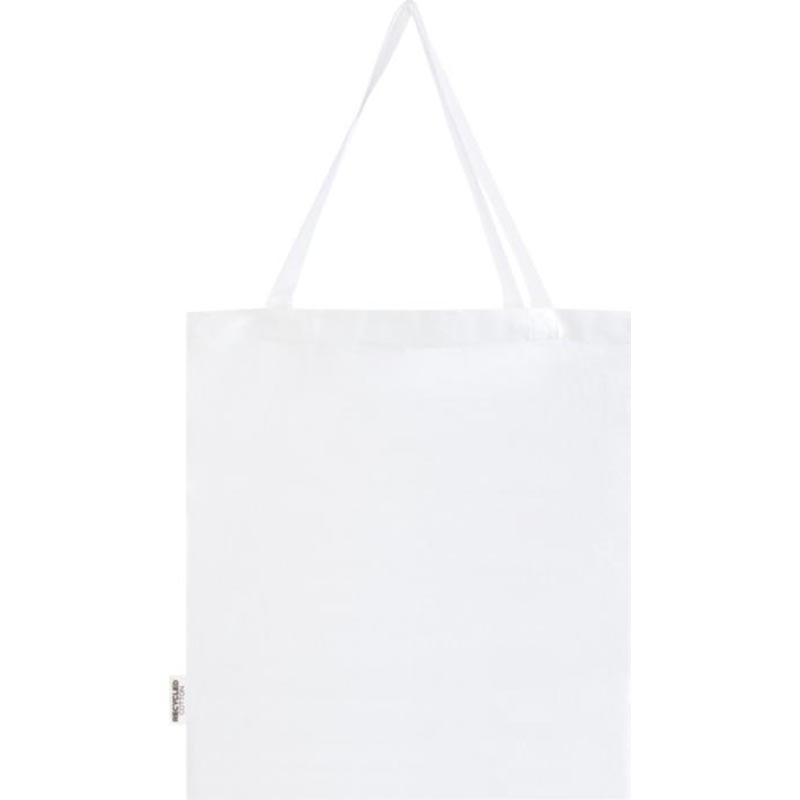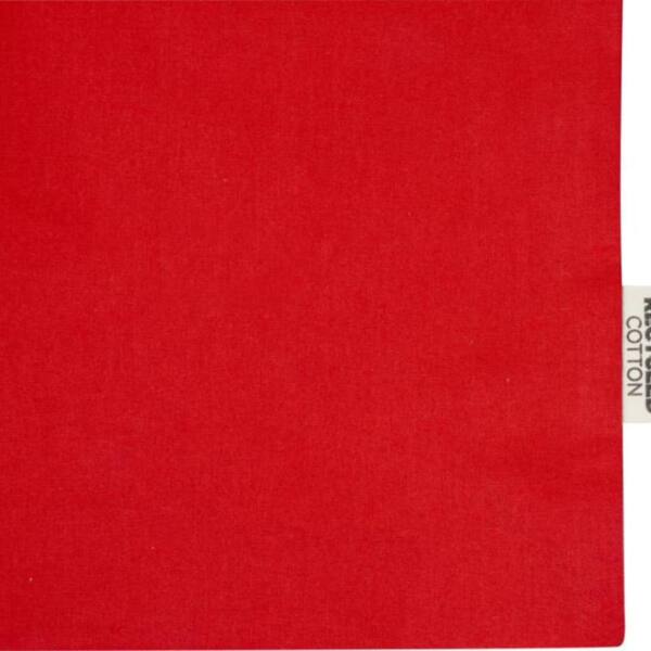 La bolsa Tote con refuerzos 100 % de algodón reciclado con certificación GRS «Madras» es la bolsa perfecta para regalar durante cualquier evento o conferencia, o para usarla como bolsa para pequeñas compras. La densidad del algodón de 140 g/m² hace que la bolsa sea resistente, duradera y adecuada para transportar objetos pesados en el compartimento principal. Con las asas para hombro de 30 cm de largo, esta bolsa Tote es fácil de llevar. Los colores disponibles para esta bolsa Tote también cuentan con la certificación, lo que garantiza que toda la cadena de suministro es transparente y está certificada. Fabricada en la India. Resistencia para hasta 5 kg de peso.