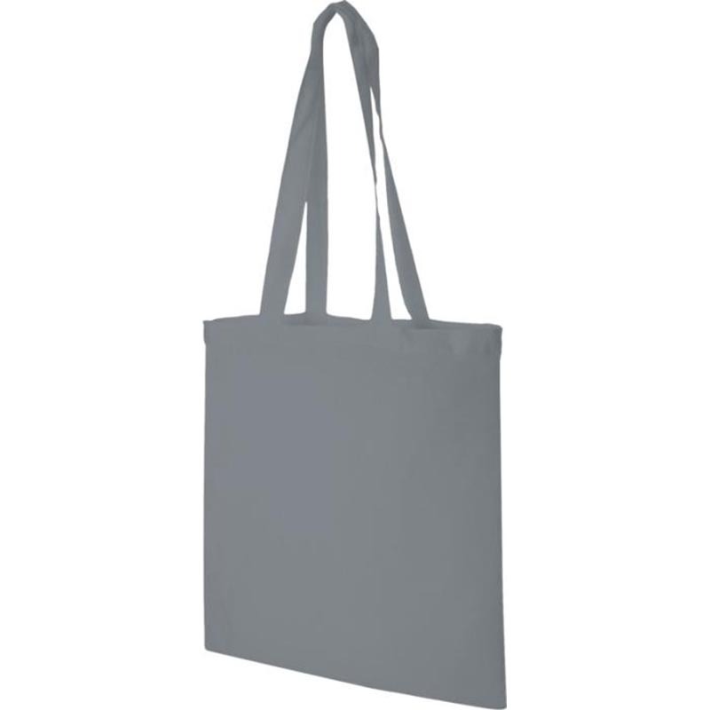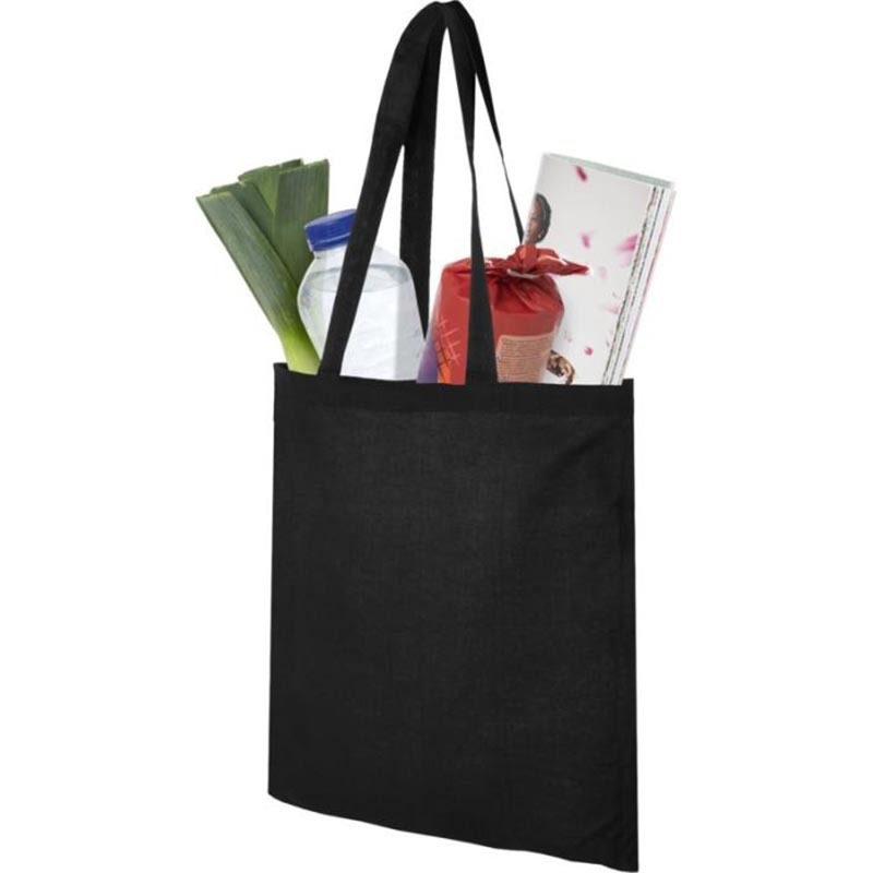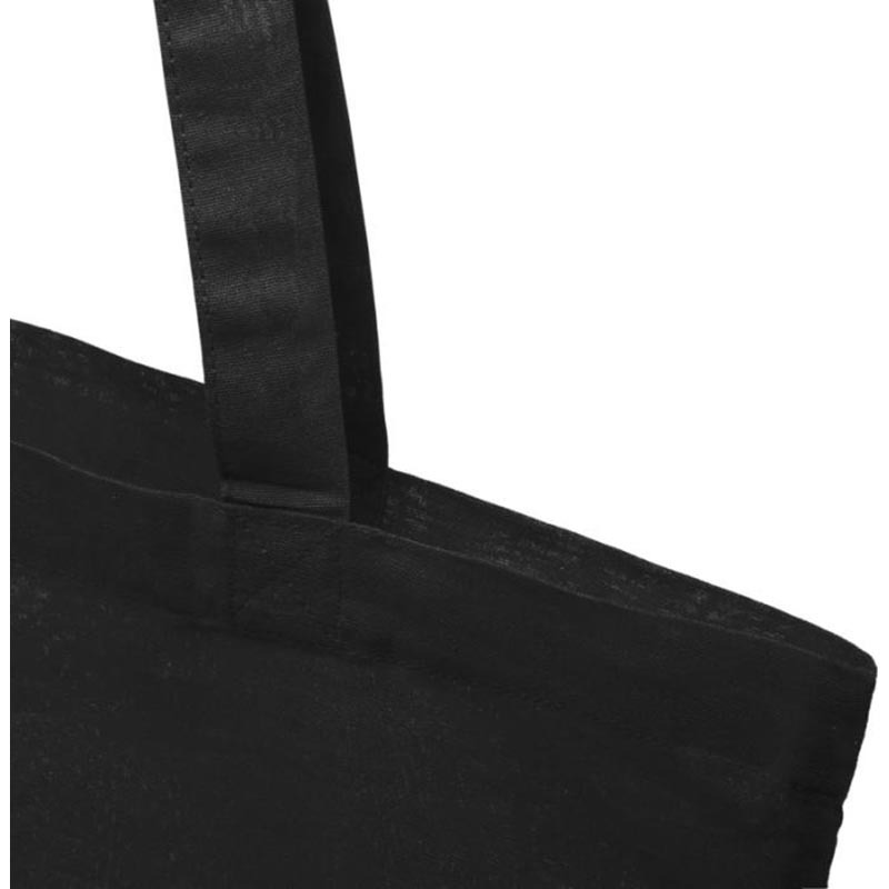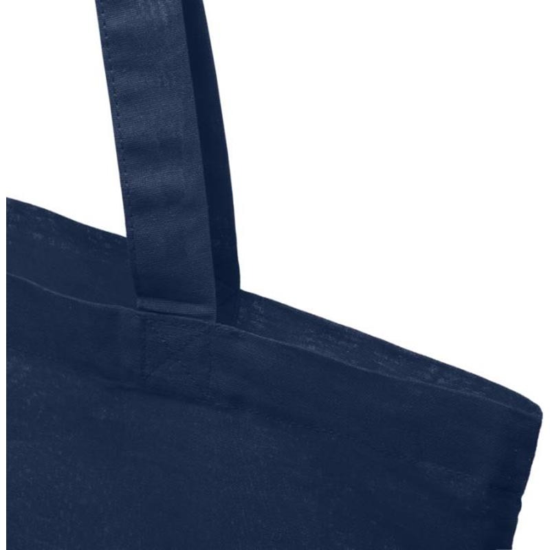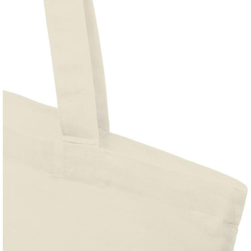Bolsa tote de algodón de 140 g/m2. Es resistente y duradera. Tiene unas asas de 30 cm de longitud. Fabricada en la India y con certificado OEKO-Tex. Resiste hasta 5 kg de peso.