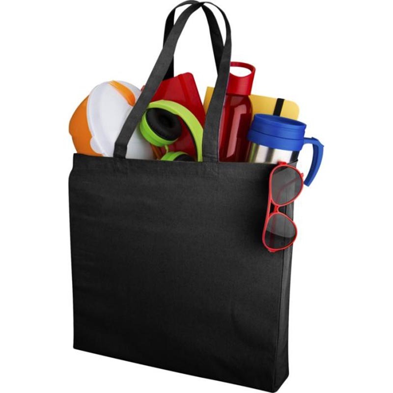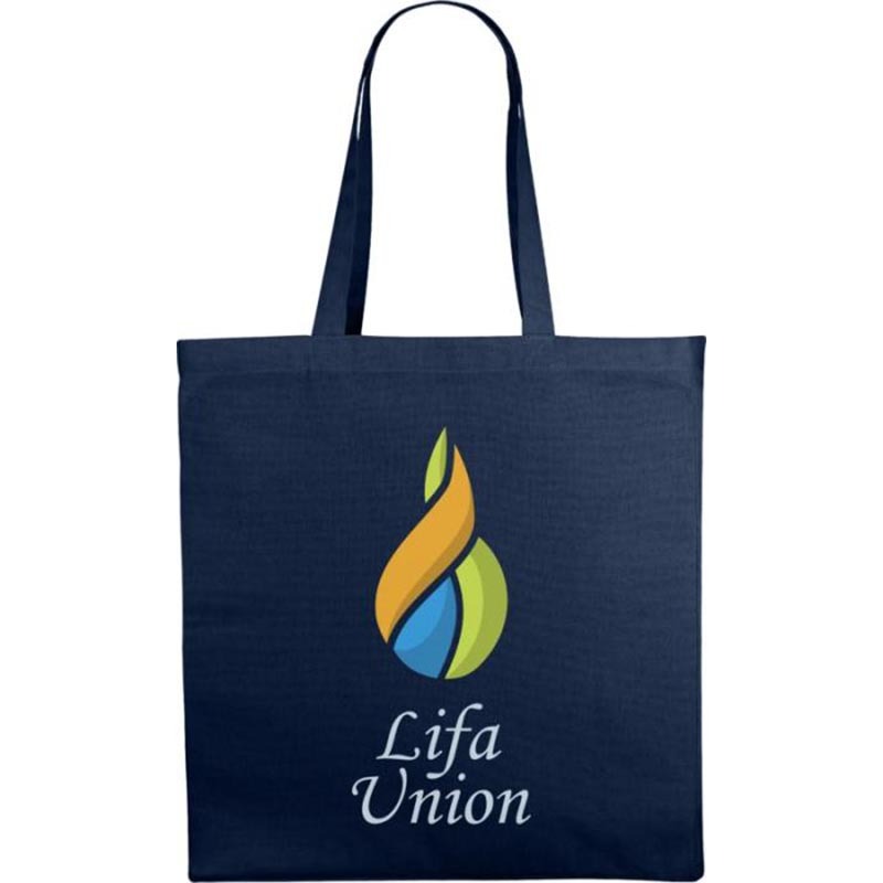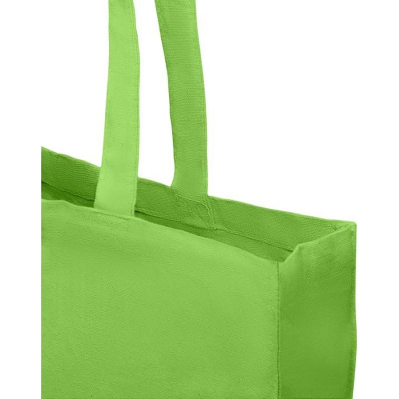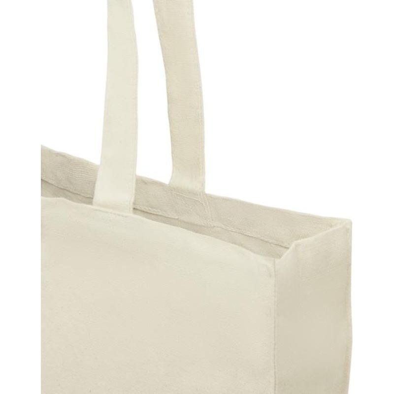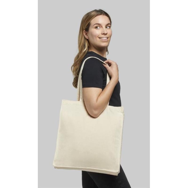 Bolsa tote con asas de hombro de 30 cm de longitud y gran compartimento principal con fuelle, está diseñada para llevarla cómodamente y es adecuada para múltiples ocasiones. Ya sea para llevar libros pesados o la compra, esta bolsa está diseñada para cubrir todas las necesidades. El algodón de 220 g/m² garantiza durabilidad y fiabilidad, y confiere a la bolsa una resistencia de hasta 10 kg de peso. Fabricada en la India y con certificado OEKO-Tex.