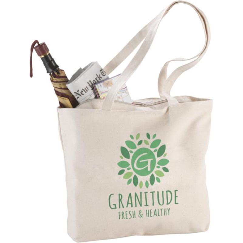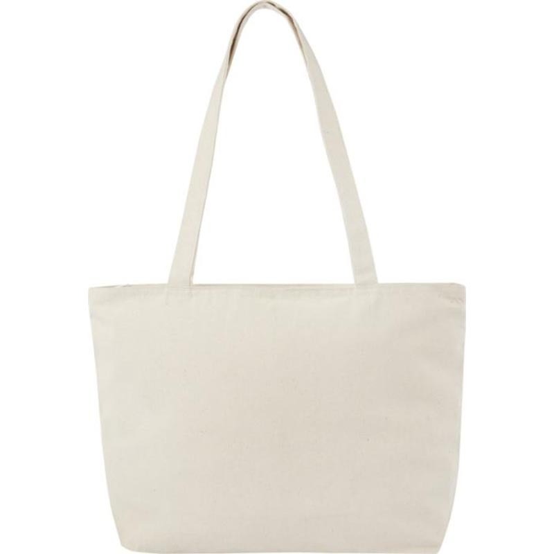 El diseño limpio da a este neceser grandes áreas de impresión y es, por tanto, una opción fantástica para reuniones, convenciones y ferias. La bolsa está hecha de algodón de color natural de 320 g/m², lo que la hace muy resistente y adecuada para transportar objetos pesados. La bolsa se cierra con una cremallera, manteniendo el contenido bien protegido. Con sus asas de 31,5 cm de largo, la tote bag Ningbo es fácil de llevar al hombro. Resistencia hasta 10 kg de peso.