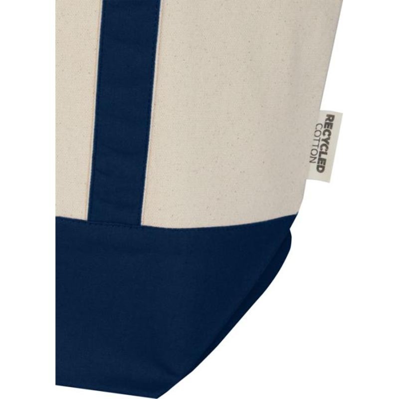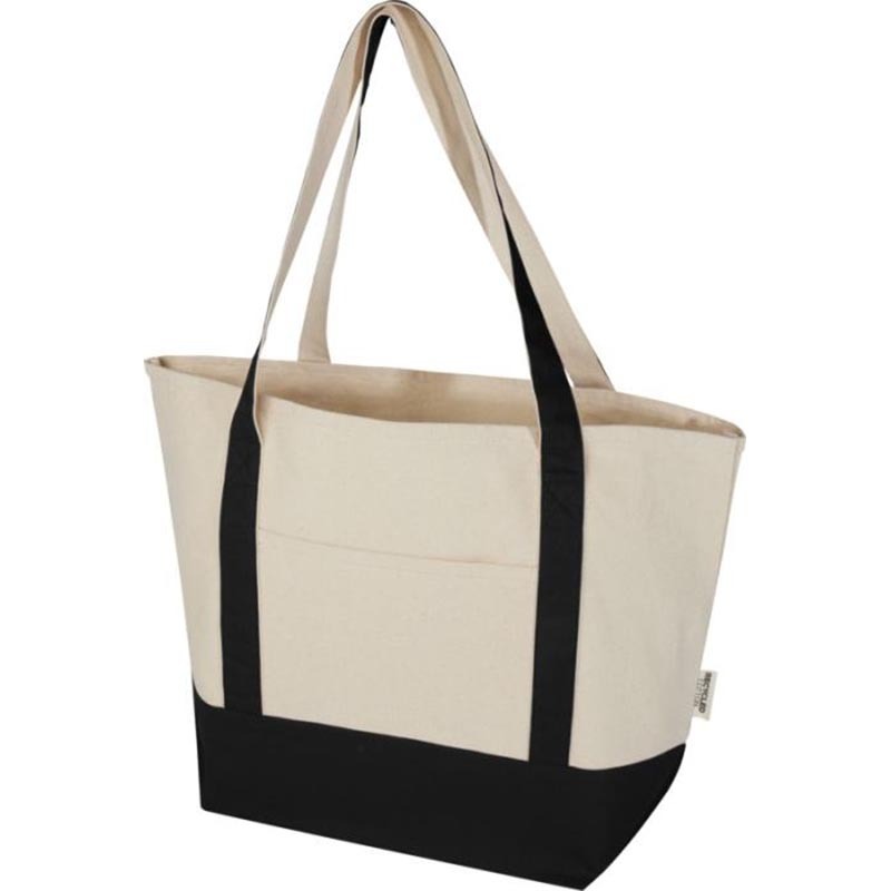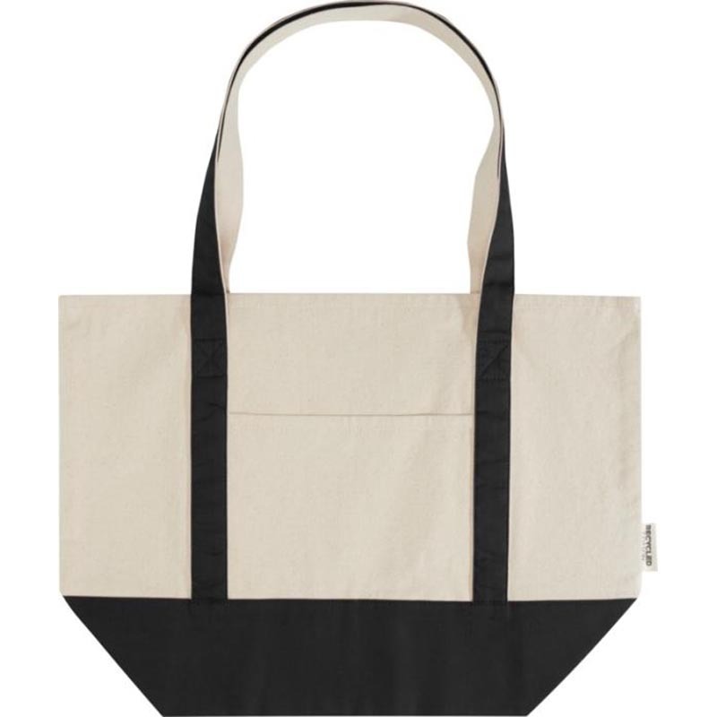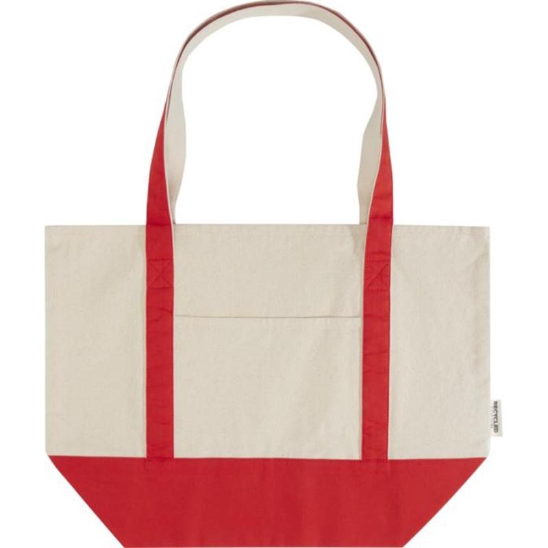 Bolsa tote fabricada en algodón reciclado 100 % con certificado GRS. Es la bolsa perfecta para un pícnic o para hacer la compra. La densidad del algodón de 320 g/m² hace que la bolsa sea resistente y duradera y es adecuada para transportar objetos pesados en el compartimento principal gracias a las asas de cuerda dobles. Los estampados disponibles para esta bolsa Tote también cuentan con la certificación GRS, lo que garantiza que toda la cadena de suministro es transparente y está certificada. Longitud del asa desplegable: 30 cm. Resistencia para hasta 10 kg de peso. Tiene una capacidad de 15 litros.