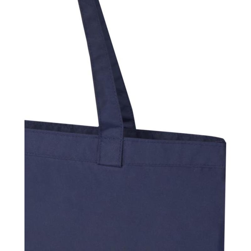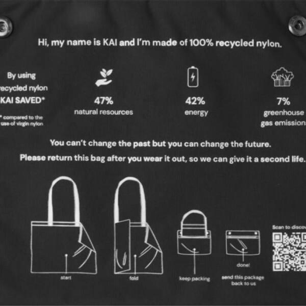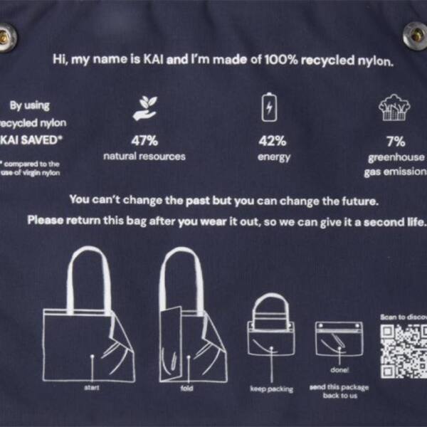 Bolsa tote de nylon reciclado GRS es la mejor opción en términos medioambientales. Una opción más sostenible empieza por un mejor diseño que tenga menos impacto en el medio ambiente. Solo con 1 bolsa, la reducción media total del impacto es la siguiente: 7 % de huella de carbono, 42 % de energía y 47 % de costes ecológicos. Fabricada con nylon reciclado certificado GRS 200T, la bolsa tote es un modelo clásico y atemporal adecuado para el uso diario. El lugar designado para la impresión es el bolsillo que hace las veces de funda. La bolsa puede devolverse a través de un programa de recogida que incluye un código QR con información adicional.