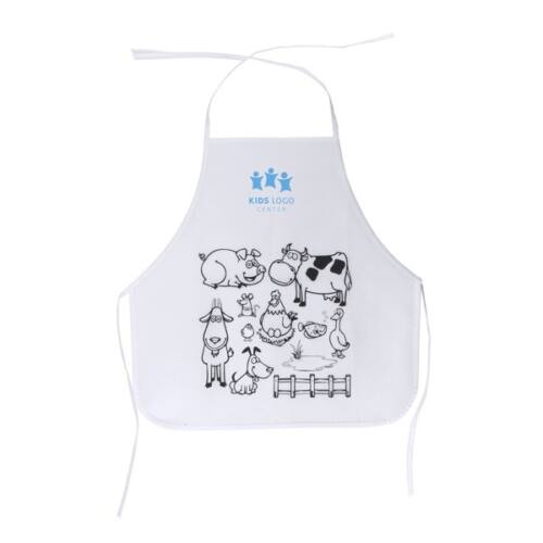 Este delantal infantil está elaborado en non-woven. Tiene un diseño para colorear. Incluye 5 ceras en varios colores. Su talla es única y ajustable.