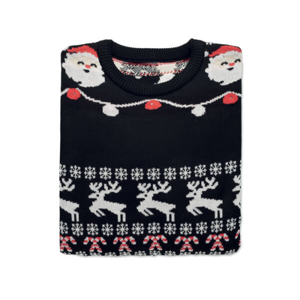 Este jersey de Navidad con 10 luces LED está elaborado en acrílico. Su talla es S/M. Tiene una compartimento para pilas extraíble. Incluye 2 pilas CR2032. Preséntate en el trabajo o en la cena familiar de Navidad con estilo gracias a este jersey festivo perfecto.