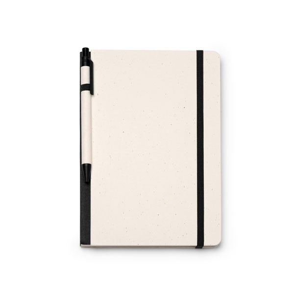 Libreta A5 de cartón reciclado con bolígrafo a juego