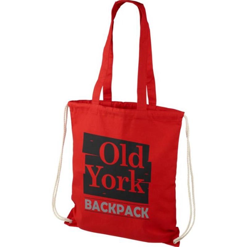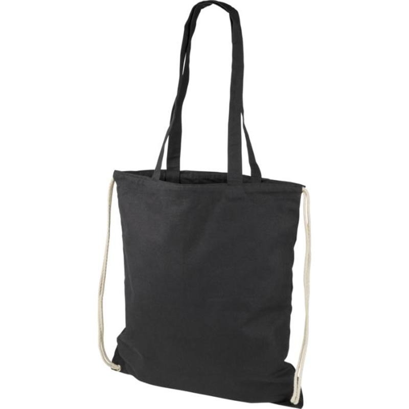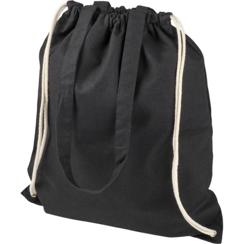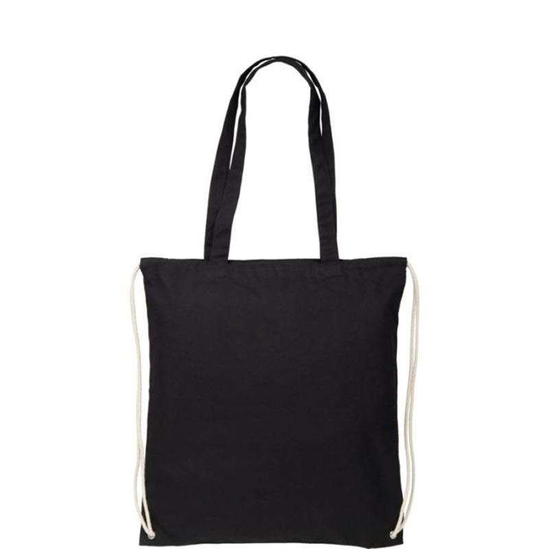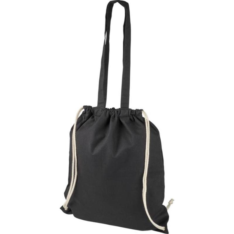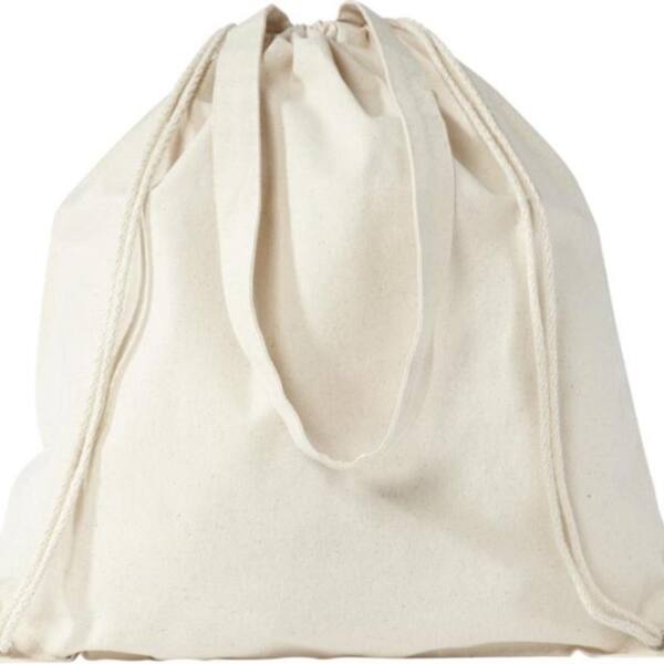 Bolsa de algodón multifuncional con asas largas y cuerda que se puede llevar como bolso o mochila. Tiene un gran compartimento principal con cierre de cuerda. Además, cuenta con dos asas extensibles de 31 cm de longitud. Tiene una capacidad de 6 litros. Resistencia hasta 5kg de peso.