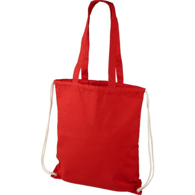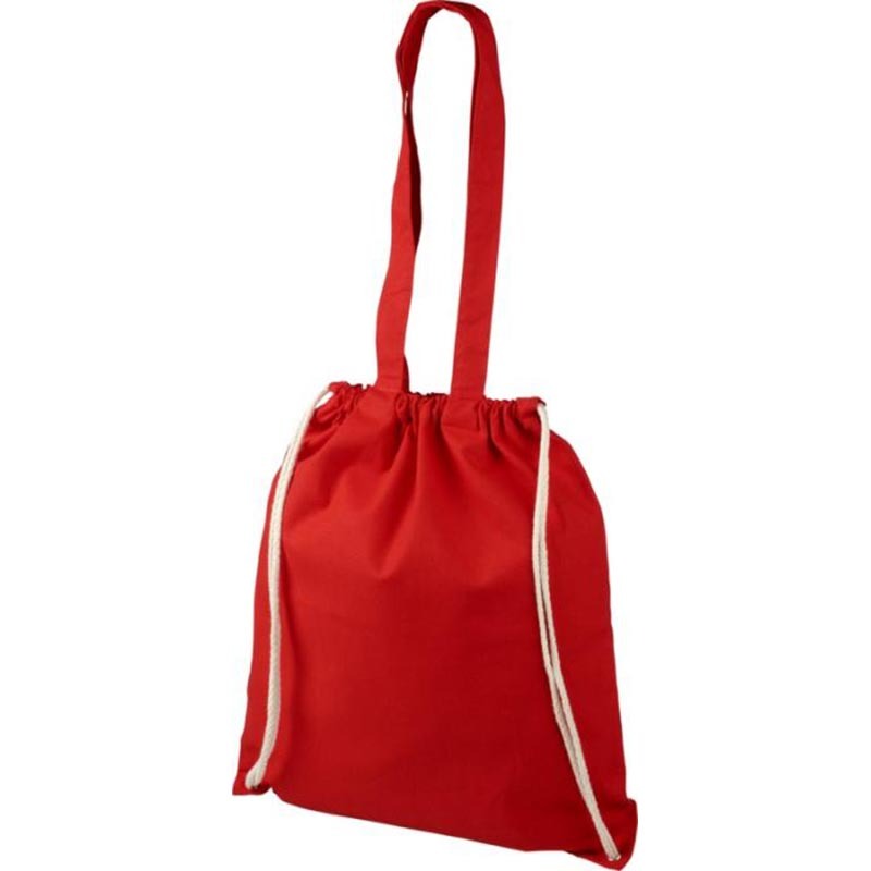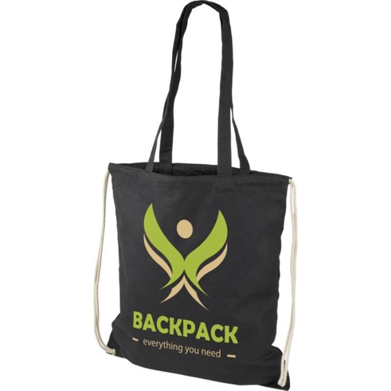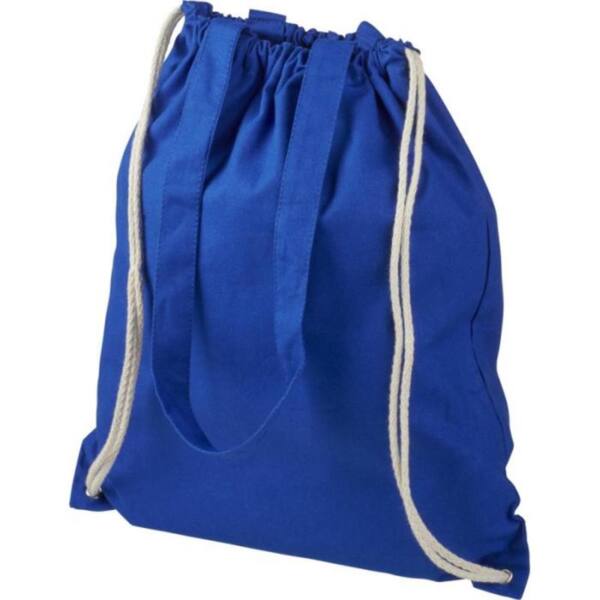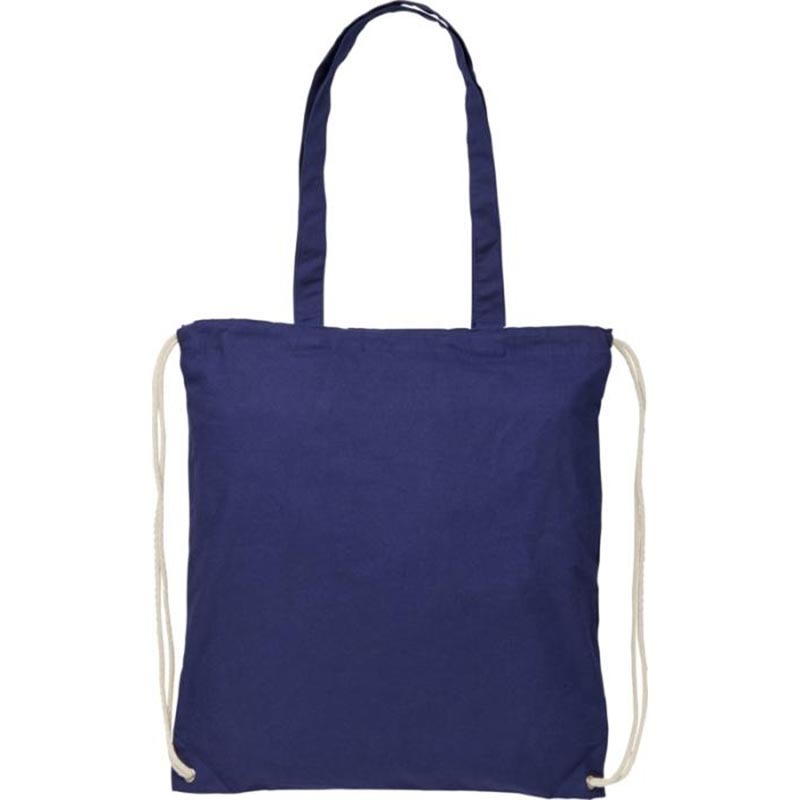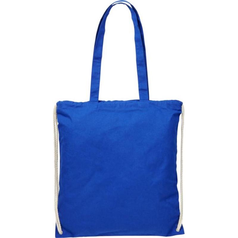 Bolsa de algodón multifuncional con asas largas y cuerda que se puede llevar como bolso o mochila. Tiene un gran compartimento principal con cierre de cuerda. Además, cuenta con dos asas extensibles de 31 cm de longitud. Tiene una capacidad de 6 litros. Resistencia hasta 5kg de peso.