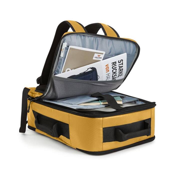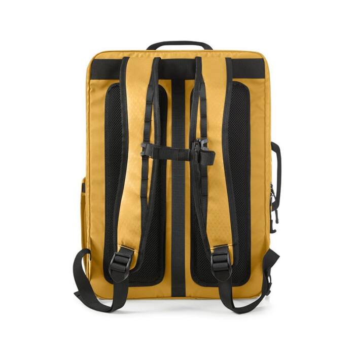 Mochila de viaje de RPET con compartimento con forro de terciopelo y cierre elástico.