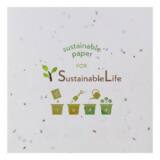 Este posavasos está elaborado en papel de pulpa de madera de 140 gr/m² con semillas de manzanilla, amapola, margarita y lavanda. Su material le otorga un valor sostenible y degradable. El pedido mínimo debe de ser de 251 unidades. Tiene el certificado FSC. Además, el producto está disponible en una semana aproximadamente desde la aprobación de diseño.