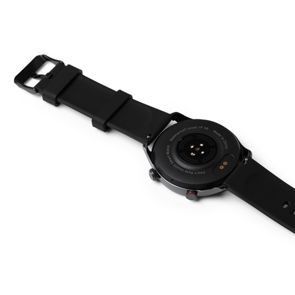 El reloj inteligente con funciones de actividad, con esfera con acabado metalizado y correa de silicona. Tiene una pantalla táctil Amoled de 1,43 pulgadas. Cuenta con función de llamadas mediante conexión Bluetooth, con control para responder, colgar, marcar o acceder al historial de llamadas mediante sus botones multifunción. Incluye un cable USB de carga. Es resistente al polvo y al agua. Viene un manual de instrucciones en 6 idiomas: español, inglés, francés, italiano, alemán y portugués. Tiene una conexión mediante app compatible con iOS y Android. Presentación en una caja de diseño.